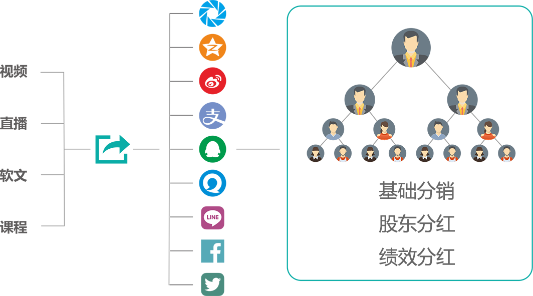 众所周知,最快的推广方式就是社交传播,通过用户在社交网络上的病毒式分享,快速覆盖目标人群,再通过分销奖励机制去刺激用户主动的分享,分销!加速平台的推广和服务资源的传播。