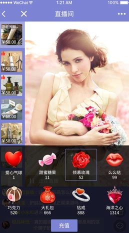 专属的购物+视频直播平台,商家在直播的同时页面推荐产品,粉丝可直接在直播页面咨询与购买,直播商城小程序玩法