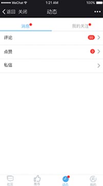 息动态,查看帖子的评论、点赞情况,还可以接收