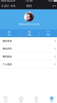 个人信息资料设置、关注及收藏情况。